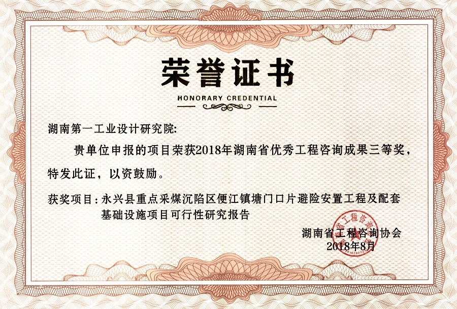 湖南省優(yōu)秀設(shè)計表揚(yáng)金獎(1984)